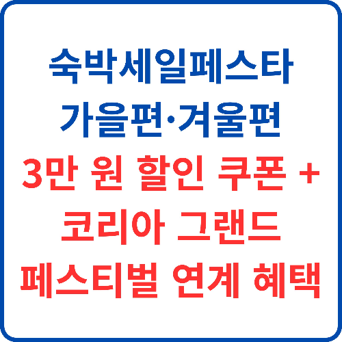 | 🍁 가을편 | 2025.8.20 ~ 10.30 | 동일 | 비수도권 숙소 7만 원 이상 → 3만 원 할인 |