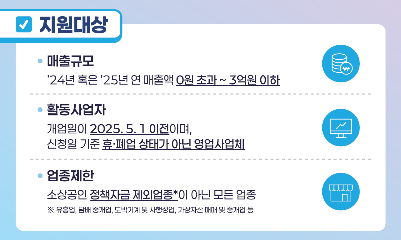 - 2024년 또는 2025년 연 매출이 0원 초과 ~ 3억 원 이하