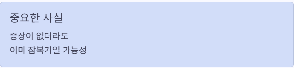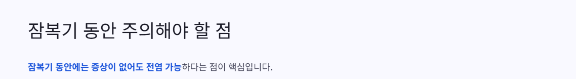 잠복기 동안에는 증상이 없어도 전염 가능하다는 점이 핵심입니다.