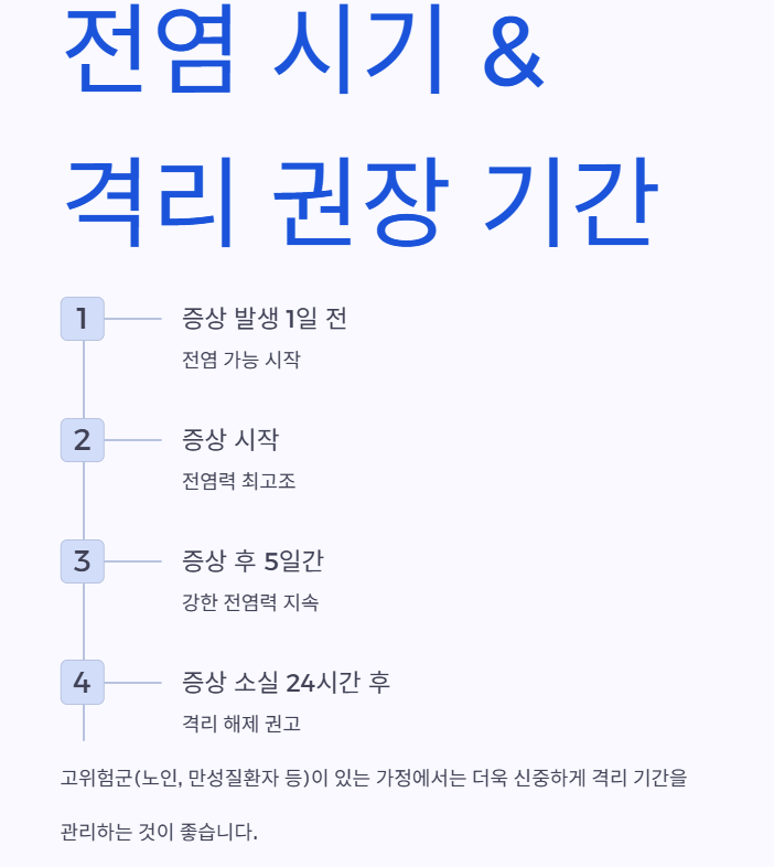 고위험군(노인, 만성질환자 등)이 있는 가정에서는 더욱 신중하게 격리 기간을 관리하는 것이 좋습니다.
