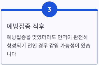 - 예방접종을 맞았더라도 면역이 완전히 형성되기 전인 경우