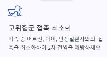 - 가족 중 고위험군(어르신, 아이, 만성질환자)과의 접촉 최소화