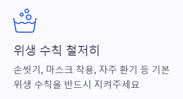 - 손씻기, 마스크 착용 등 방역 수칙도 꼭 함께 실천하세요.