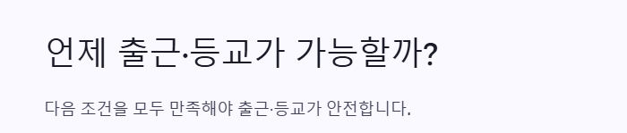 다음 조건을 모두 만족해야 출근·등교가 안전합니다.