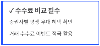 - 수수료 확인: 증권사별로 거래 수수료 우대 이벤트가 다릅니다. 가입 전 '평생 우대' 혜택이 있는지 꼭 비교해 보고 개설하세요.