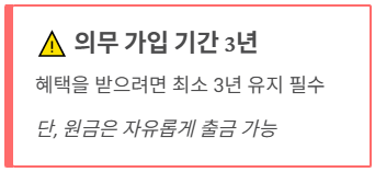 - 의무 가입 기간 3년: 혜택을 받으려면 최소 3년간 계좌를 유지해야 합니다. (단, 납입한 원금 내에서는 횟수 제한 없이 자유롭게 출금이 가능하니 너무 걱정 마세요! 수익금만 안 빼면 됩니다.)