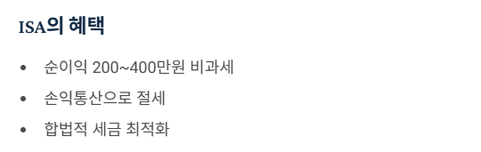 하지만 ISA는 계좌 내 모든 상품의 이익과 손실을 합쳐서(퉁쳐서) 순이익에 대해서만 과세합니다.
