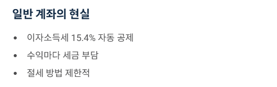 (일반 세율 15.4%보다 훨씬 저렴하고, 금융소득종합과세에 합산되지 않아 '슈퍼 세이브' 효과가 있습니다.)
