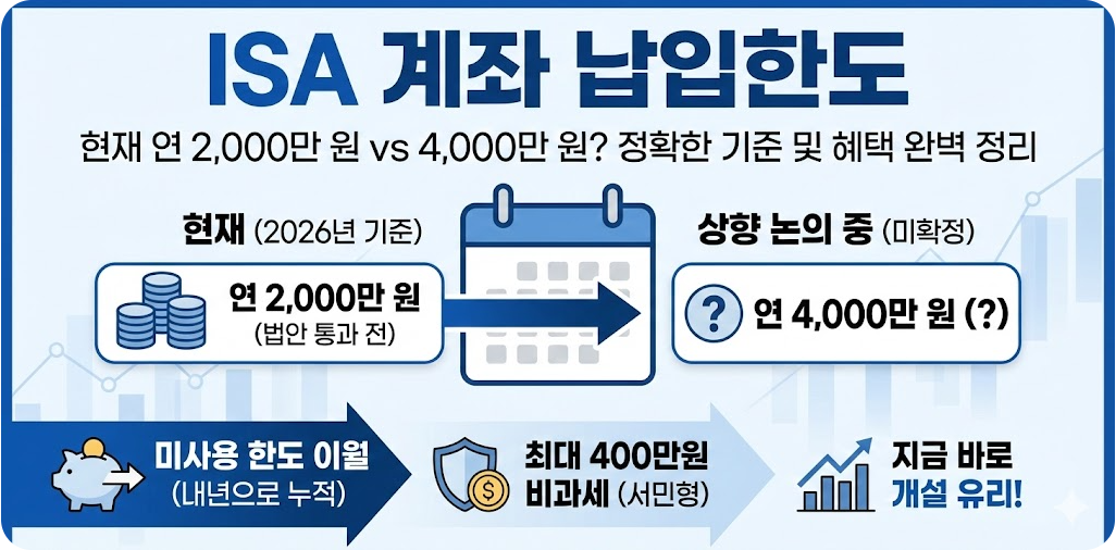 #ISA계좌납입한도 #ISA계좌 #개인종합자산관리계좌 #절세통장 #비과세저축 #2026년ISA #ISA서민형 #ISA일반형 #납입한도이월 #세금아끼는법
