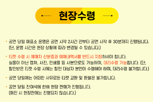 - 할인 예매는 반드시 본인이 직접 수령해야 함