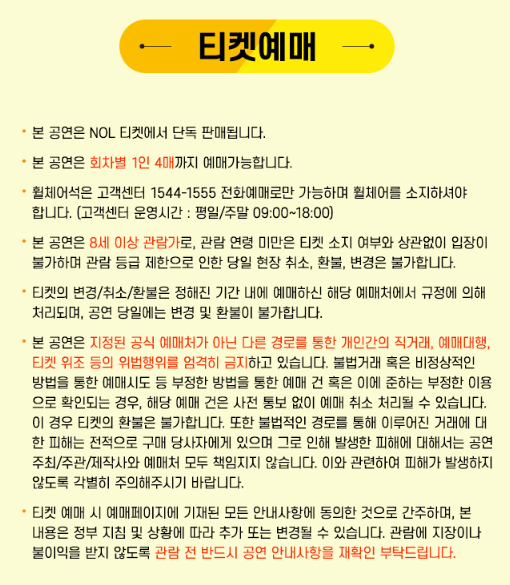- ✅ 휠체어석: ☎ 1544-1555 (전화예매만 가능)
