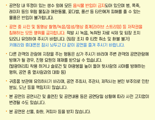 - 공연 당일에는 가급적 대중교통 이용을 권장드립니다.