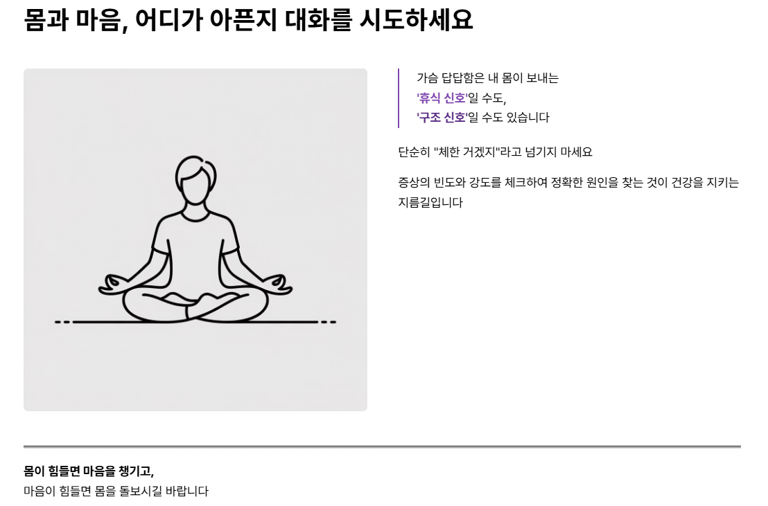 가슴 답답함은 내 몸이 보내는 '휴식 신호'일 수도, '구조 신호'일 수도 있습니다.