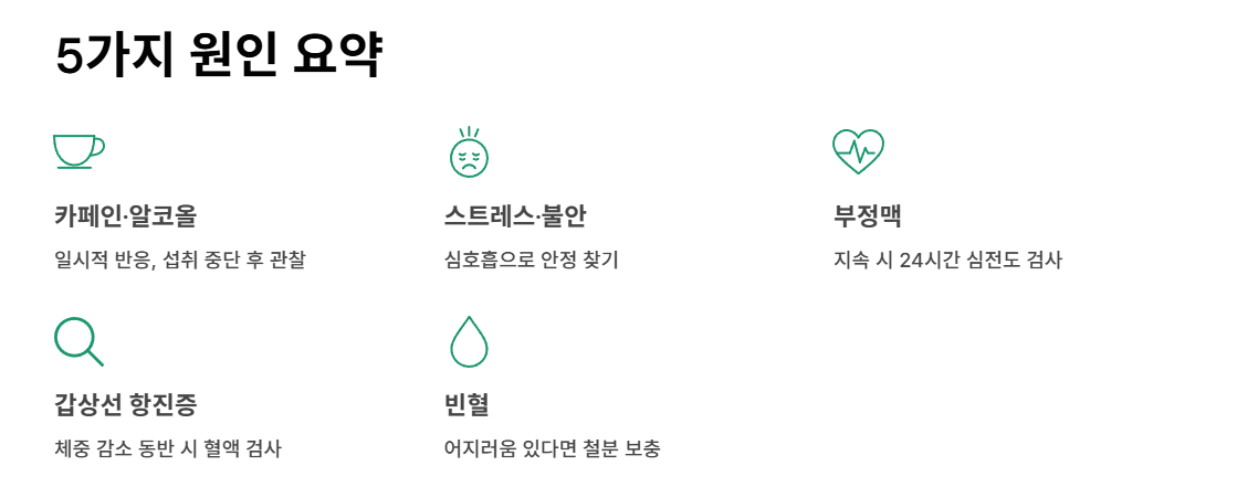 가슴 두근거림의 원인을 생활 습관, 심리, 신체 질환 등 다양한 관점에서 5가지로 정리해 드립니다.