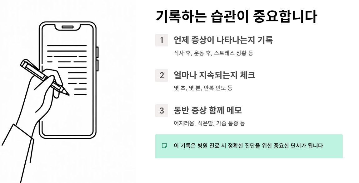 하지만, 증상이 언제 나타나는지, 얼마나 지속되는지 스마트폰에 메모해두는 습관을 들이세요.