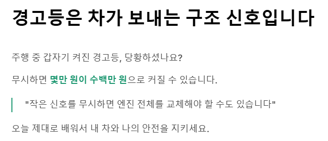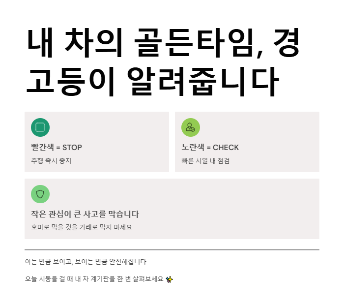 "내 차의 골든타임, 경고등이 알려줍니다"