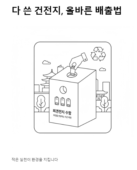 - 올바른 배출: 반드시 아파트 단지나 주민센터, 지하철역 등에 비치된 '폐건전지 전용 수거함'에 배출해야 합니다.