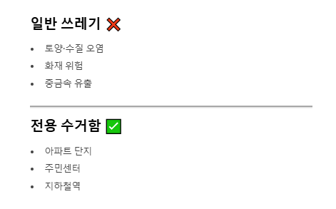 - 환경 오염: 일반 쓰레기(종량제 봉투)에 버리면 소각/매립 과정에서 토양과 수질을 심각하게 오염시킵니다. 불이 날 위험도 있습니다.