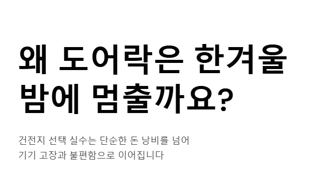 "왜 현관 도어락은 꼭 한겨울 밤에 멈출까요?"