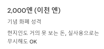 - 2,000엔: 기념 화폐 성격이 강해 현지인도 거의 못 보는 돈입니다. 실사용으로는 무시하셔도 됩니다.