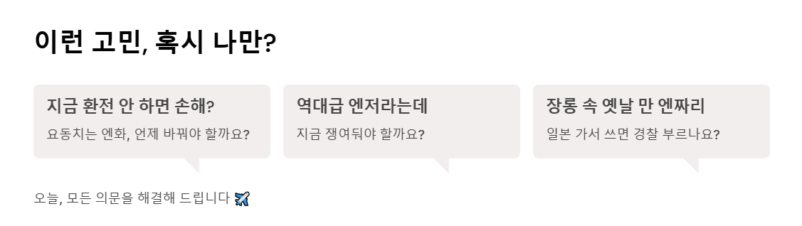 "역대급 엔저라는데 지금 쟁여둬야 할까요?", "장롱 속 옛날 만 엔짜리, 일본 가서 쓰면 경찰 부르나요?"