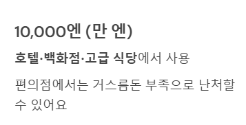 한국의 5만 원권 생각하고 1만 엔권만 잔뜩 환전하면 낭패를 봅니다.