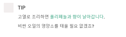 - 마케터의 조언: 하지만 고열을 가하면 핵심 성분인 '폴리페놀'과 '향'이 날아갑니다. 비싼 오일을 굳이 식용유처럼 써서 영양소를 태울 필요는 없겠죠? 가열 요리엔 저렴한 엑스트라 버진을, 생식용으론 고스펙 오일을 쓰는 것이 현명합니다.