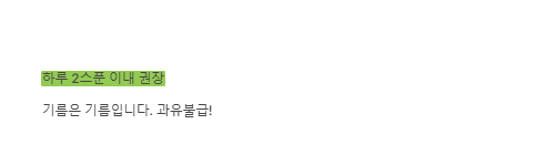 - 부작용: 기름은 기름입니다. 과다 섭취 시 설사나 복통을 유발할 수 있고, 칼로리가 높아 살이 찔 수 있습니다. 하루 2스푼을 넘기지 마세요.