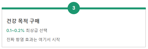 - 구매 기준: 국제올리브협회(IOC) 기준 엑스트라 버진은 0.8% 이하입니다. 하지만 건강 목적으로 드신다면 0.1% ~ 0.2% 대의 최상급 제품을 선택해야 제대로 된 항염 효과를 볼 수 있습니다.
