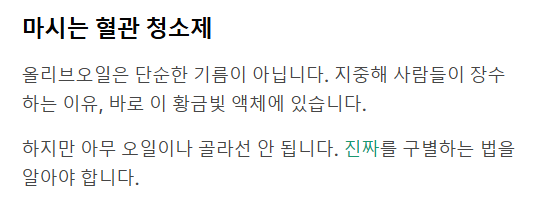 #올리브오일효능 #엑스트라버진 #올리브유먹는법 #냉압착올리브유 #올리브오일산도 #다이어트식단 #변비해결 #올레오칸탈 #발연점 #키토제닉식단