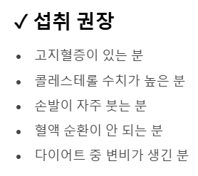 | 특수 상황 | 다이어트 중 변비가 생긴 분 | 수술 예정자/임산부 (지혈을 방해할 수 있음) |