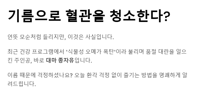 "기름으로 살을 빼고, 기름으로 혈관을 청소한다?" 언뜻 들으면 모순 같지만, 사실입니다.