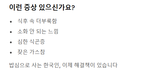 | 증상 | 식후 속이 더부룩하고 가스가 차는 분 | 임산부/수유부 (성분 확인 후 섭취 권장) |