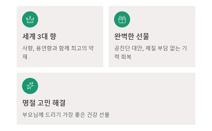 - 뇌 건강: 뇌 혈류량을 늘려 뇌졸중(중풍) 예방에 도움을 주고, 머리를 맑게 하여 집중력이 필요한 수험생이나 기력이 쇠한 노년층에게 탁월한 침향환 효능을 발휘합니다.