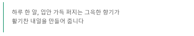 하루 한 알, 입안 가득 퍼지는 그윽한 향기가 활기찬 내일을 만들어 줄 것입니다.