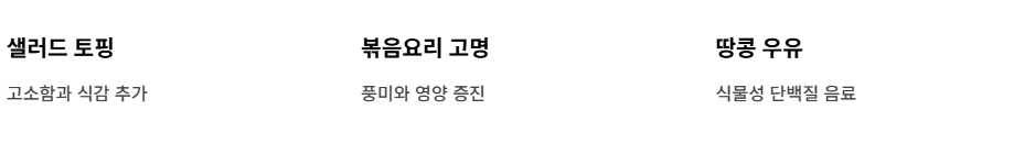 등으로 다양하게 활용 가능하며 고소함과 풍미가 크게 증가합니다.