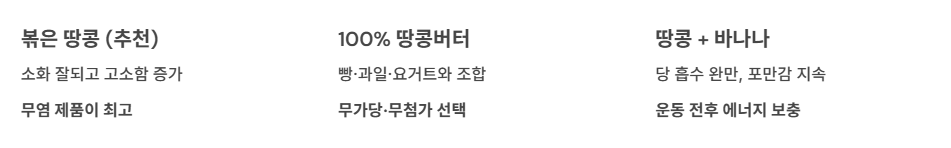 👉 무염 볶음 땅콩, 100% 땅콩버터가 가장 좋습니다.