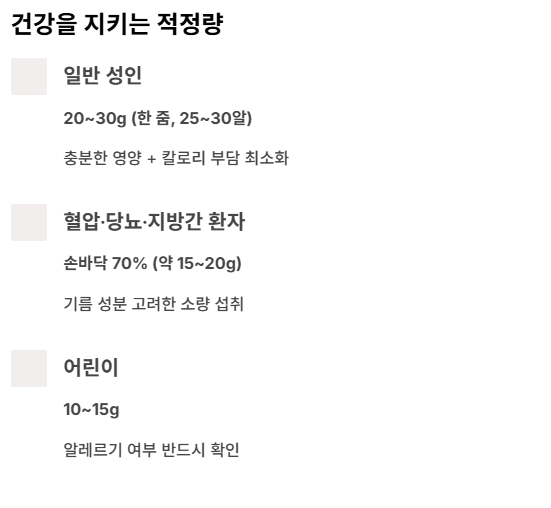 ✔ 하루 20~30g(한 줌, 25~30알 정도)