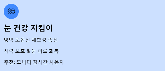 - 추천: 하루 종일 모니터를 보는 직장인, 스마트폰 사용이 많은 분