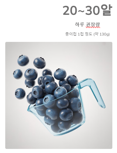 전문가들이 권장하는 블루베리 하루 섭취량은 약 20~30알 (종이컵 1컵 정도, 130g 내외)입니다.