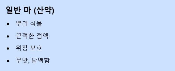 혹시 고구마처럼 생겨서 갈아 먹는 끈적한 '마(산약)'를 생각하셨나요? ❌ 아닙니다!