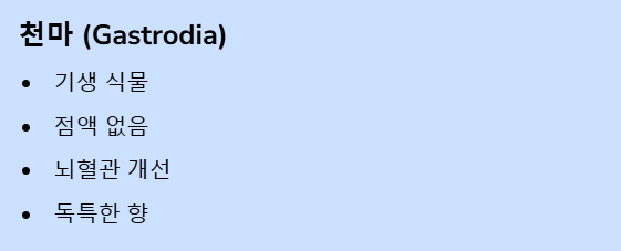 천마는 약성이 강한 만큼 섭취 시 주의가 필요합니다.