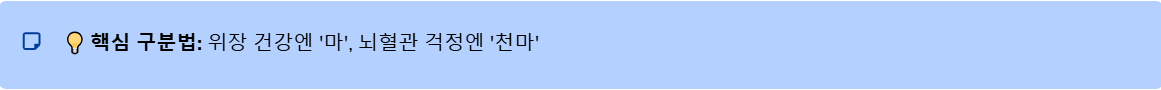 💡 핵심: 위장이 안 좋을 땐 '마', 머리가 아프거나 혈관이 걱정될 땐 '천마'를 드셔야 합니다.