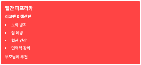 나에게 필요한 파프리카 효능이 무엇인지 표로 한눈에 비교해 보세요.