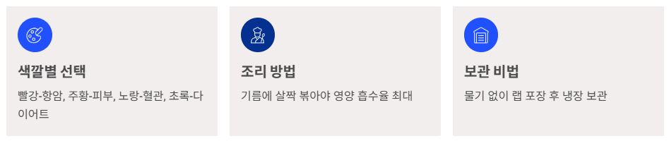 빨강, 노랑, 주황 색깔별 특징부터 영양 흡수율 높이는 요리법, 싱싱한 보관법까지 싹 정리해 드립니다.