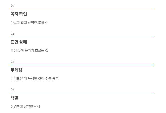 - 고르는 법: 꼭지가 마르지 않고 선명한 초록색인 것, 표면에 흠집이 없고 윤기가 흐르며 들어봤을 때 묵직한 것이 수분이 많고 신선합니다.