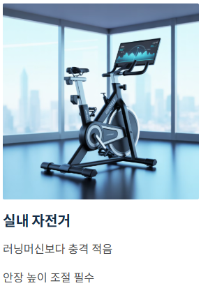 - 주의사항 (핵심): 안장이 너무 낮으면 무릎이 과하게 굽혀져 통증을 유발합니다. 페달을 가장 아래로 밟았을 때 무릎이 살짝(10~15도) 구부러지는 높이가 되어야 올바른 무릎관절에 좋은 운동이 됩니다.