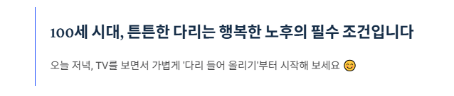100세 시대, 튼튼한 다리는 행복한 노후의 필수 조건입니다.