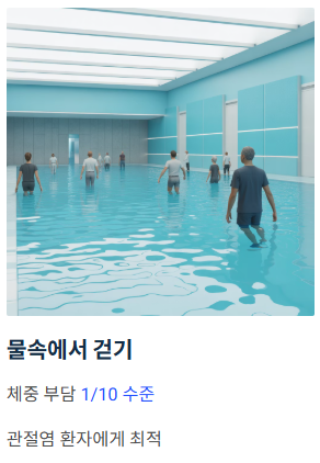이미 관절염이 진행된 환자분들에게 가장 이상적인 무릎관절에 좋은 운동으로 꼽힙니다.
