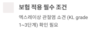 - 엑스레이상 관절염 소견(KL grade 1~3단계)이 있어야 합니다.